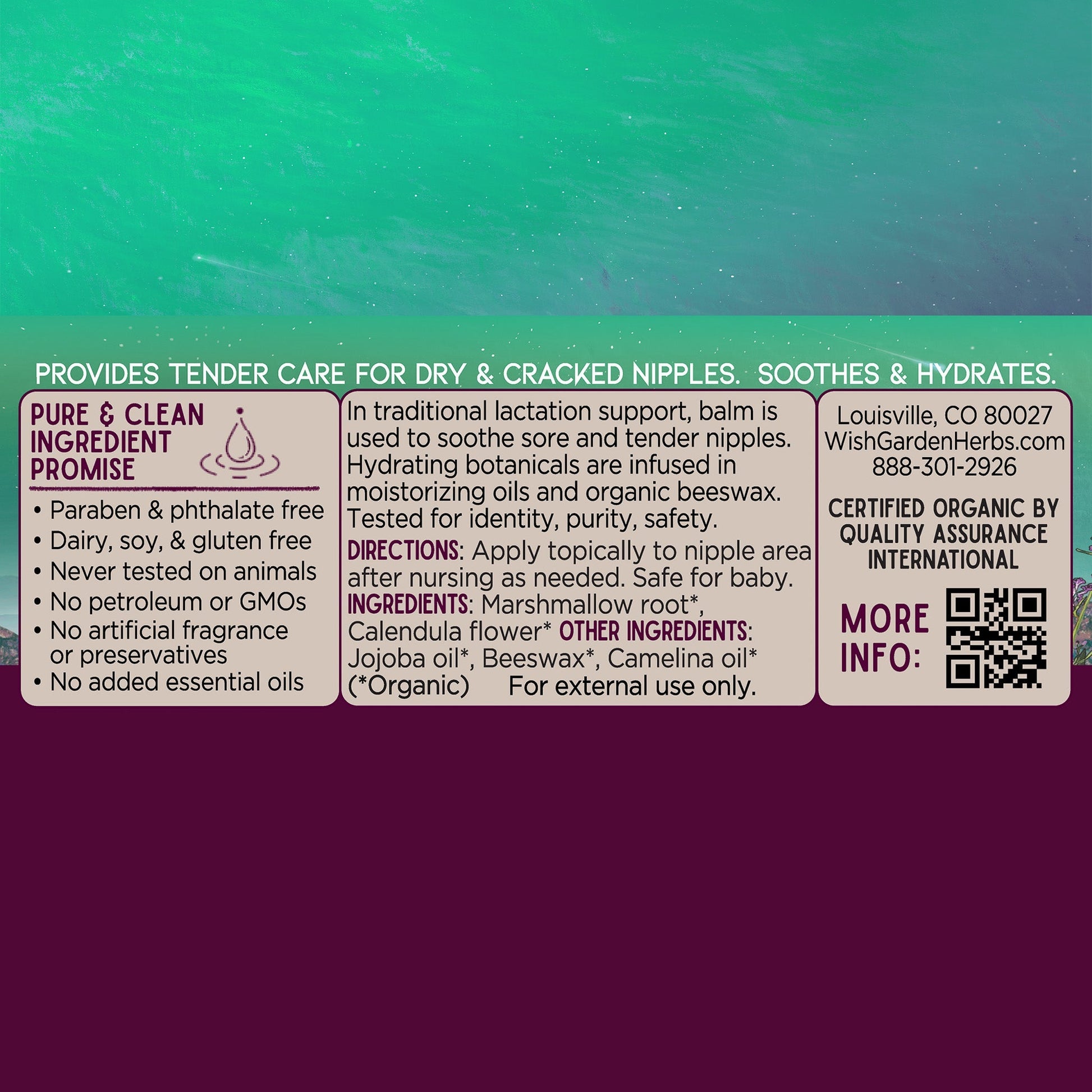 In traditional lactation support, balm is used to soothe sore and tender nipples. Organic calendula and marshmallow are infused in moisturizing beeswax to extract their rich nourishing constituents. This salve is a nursing mom’s best ally for smoother, happier skin. Safe for baby.